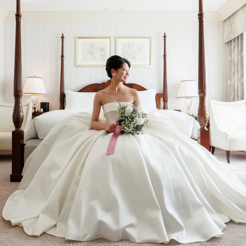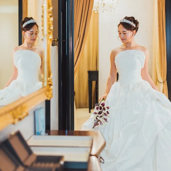 【1日2組限定◆憧れのドレスを着て花嫁体験】お母様とのご来館も大歓迎!スタイリストが丁寧にヒアリングしドレス選びからスタート。上質なミカドシルクやレース素材、繊細な刺繍を施したドレスなど様々ご用意。